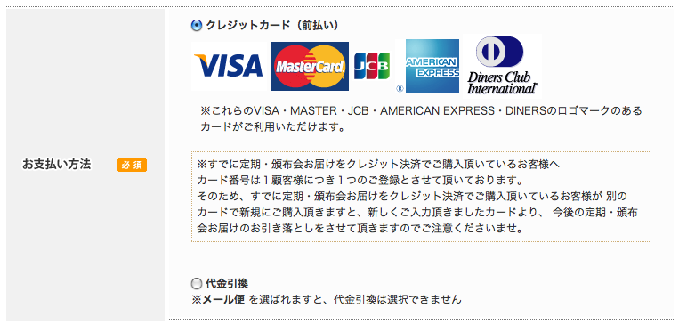 そういう意味で言うと、定期コースに一番相性が良いのはクレジットカード決済